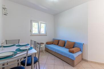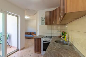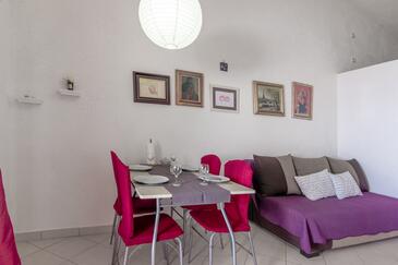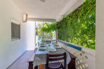 Ferienwohnung bietet Platz für 8 Gäste. Die Betten sind in Schlafzimmern, die es 4 gibt, innerhalb einer Gesamtfläche von 70m2, angeordnet. Die Gäste haben eine eigene Terrasse zur Verfügung, auf der sie in warmen Sommernächten genießen können. Das Apartment bietet Meerblick. Es ist erlaubt, Speisen auf dem Gemeinschafts-Grill vorzubereiten. In der Unterkunftseinheit besteht die Möglichkeit des Mitbringens von Haustieren, und die Dienstleistung ist im Preis der Unterkunft enthalten.