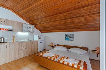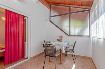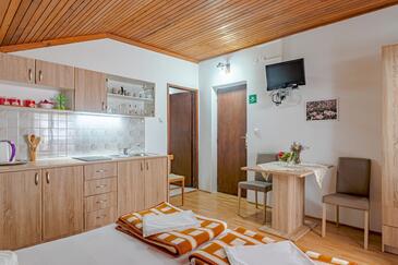 Ferienwohnung bietet Platz für 3 Gäste. Die Betten sind in Schlafzimmern, die es 1 gibt, innerhalb einer Gesamtfläche von 23m2, angeordnet. Die Gäste haben eine eigene Terrasse zur Verfügung, auf der sie in warmen Sommernächten genießen können. Es ist erlaubt, Speisen auf dem Gemeinschafts-Grill vorzubereiten.