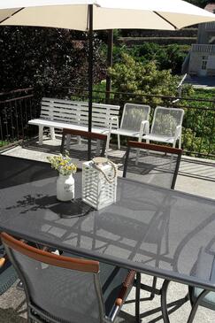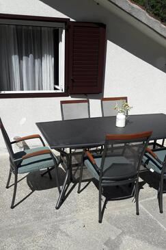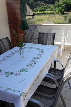 Ferienwohnung bietet Platz für 8 Gäste. Die Betten sind in Schlafzimmern, die es 3 gibt, innerhalb einer Gesamtfläche von 79m2, angeordnet. Die Gäste haben eine eigene Terrasse zur Verfügung, auf der sie in warmen Sommernächten genießen können. Das Apartment bietet Meerblick. Es ist erlaubt, Speisen auf dem Gemeinschafts-Grill vorzubereiten.