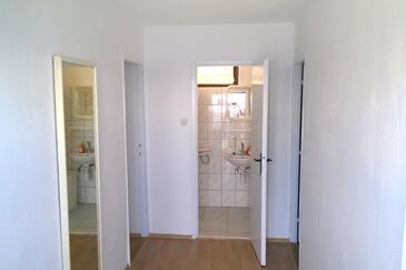 Ferienwohnung bietet Platz für 8 Gäste. Die Betten sind in Schlafzimmern, die es 4 gibt, innerhalb einer Gesamtfläche von 75m2, angeordnet. Die Gäste haben eine eigene Terrasse zur Verfügung, auf der sie in warmen Sommernächten genießen können. Das Apartment bietet Meerblick. Es ist erlaubt, Speisen auf dem Gemeinschafts-Grill vorzubereiten.