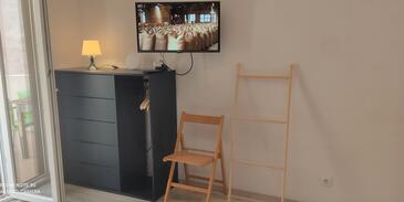 Ferienwohnung bietet Platz für 4 Gäste. Die Betten sind in Schlafzimmern, die es 2 gibt, innerhalb einer Gesamtfläche von 69m2, angeordnet. Die Gäste haben eine eigene Terrasse zur Verfügung, auf der sie in warmen Sommernächten genießen können. Es ist erlaubt, Speisen auf dem Gemeinschafts-Grill vorzubereiten. In der Unterkunftseinheit besteht die Möglichkeit des Mitbringens von Haustieren gegen Aufpreis.