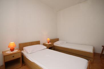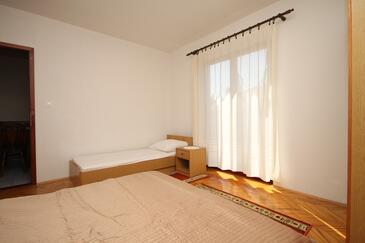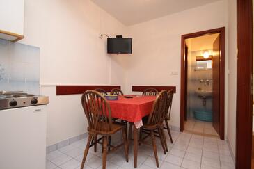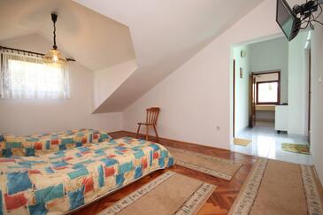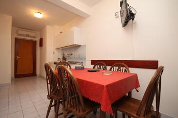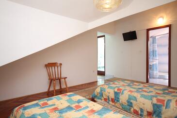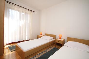 Ferienwohnung bietet Platz für 6 Gäste. Die Betten sind in Schlafzimmern, die es 2 gibt, innerhalb einer Gesamtfläche von 38m2, angeordnet. Die Gäste haben einen eigenen Balkon zur Verfügung, auf der sie in warmen Sommernächten genießen können. Es ist erlaubt, Speisen auf dem Gemeinschafts-Grill vorzubereiten.