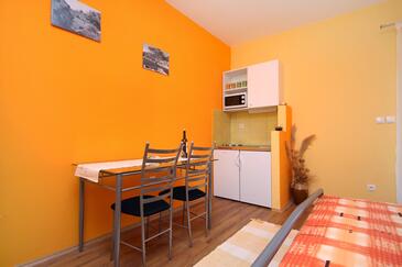 Studio bietet Platz für 2 Gäste. Die Betten sind in Schlafzimmern, die es 1 gibt, innerhalb einer Gesamtfläche von 17m2, angeordnet. Die Gäste haben eine eigene Terrasse zur Verfügung, auf der sie in warmen Sommernächten genießen können. Es ist erlaubt, Speisen auf dem Gemeinschafts-Grill vorzubereiten. In der Unterkunftseinheit besteht die Möglichkeit des Mitbringens von Haustieren, und die Dienstleistung ist im Preis der Unterkunft enthalten.