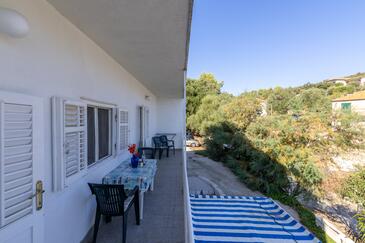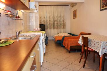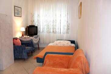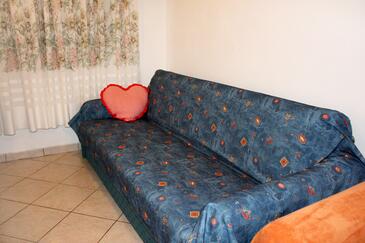 Ferienwohnung bietet Platz für 7 Gäste. Die Betten sind in Schlafzimmern, die es 3 gibt, und in Wohnzimmer, innerhalb einer Gesamtfläche von 77m2, angeordnet. Die Gäste haben einen eigenen Balkon zur Verfügung, auf der sie in warmen Sommernächten genießen können. Das Apartment bietet Meerblick. Es ist erlaubt, Speisen auf dem Gemeinschafts-Grill vorzubereiten. In der Unterkunftseinheit besteht die Möglichkeit des Mitbringens von Haustieren gegen Aufpreis.