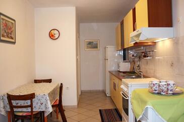 Ferienwohnung bietet Platz für 7 Gäste. Die Betten sind in Schlafzimmern, die es 3 gibt, und in Wohnzimmer, innerhalb einer Gesamtfläche von 77m2, angeordnet. Die Gäste haben einen eigenen Balkon zur Verfügung, auf der sie in warmen Sommernächten genießen können. Das Apartment bietet Meerblick. Es ist erlaubt, Speisen auf dem Gemeinschafts-Grill vorzubereiten. In der Unterkunftseinheit besteht die Möglichkeit des Mitbringens von Haustieren gegen Aufpreis.