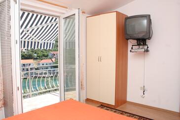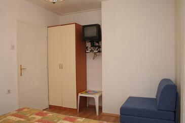 Ferienwohnung bietet Platz für 4 Gäste. Die Betten sind in Schlafzimmern, die es 2 gibt, innerhalb einer Gesamtfläche von 30m2, angeordnet. Die Gäste haben eine eigene Terrasse zur Verfügung, auf der sie in warmen Sommernächten genießen können. Das Apartment bietet Meerblick. Es ist erlaubt, Speisen auf dem Gemeinschafts-Grill vorzubereiten.