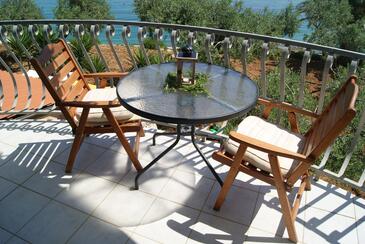 Ferienwohnung bietet Platz für 2 Gäste. Die Betten sind in Schlafzimmern, die es 1 gibt, innerhalb einer Gesamtfläche von 30m2, angeordnet. Die Gäste haben eine eigene Terrasse zur Verfügung, auf der sie in warmen Sommernächten genießen können. Das Apartment bietet Meerblick. Es ist erlaubt, Speisen auf dem Gemeinschafts-Grill vorzubereiten. In der Unterkunftseinheit besteht die Möglichkeit des Mitbringens von Haustieren gegen Aufpreis.