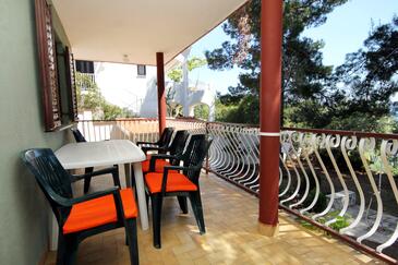 Ferienwohnung bietet Platz für 5 Gäste. Die Betten sind in Schlafzimmern, die es 2 gibt, innerhalb einer Gesamtfläche von 46m2, angeordnet. Die Gäste haben eine eigene Terrasse zur Verfügung, auf der sie in warmen Sommernächten genießen können. Das Apartment bietet Meerblick. Es ist erlaubt, Speisen auf dem Gemeinschafts-Grill vorzubereiten. In der Unterkunftseinheit besteht die Möglichkeit des Mitbringens von Haustieren, und die Dienstleistung ist im Preis der Unterkunft enthalten.