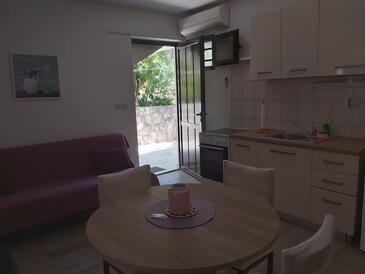 Ferienwohnung bietet Platz für 5 Gäste. Die Betten sind in Schlafzimmern, die es 2 gibt, und in Esszimmer, innerhalb einer Gesamtfläche von 43m2, angeordnet. Die Gäste haben eine eigene Terrasse zur Verfügung, auf der sie in warmen Sommernächten genießen können. Das Apartment bietet Meerblick. Für vollen Genuss und Entspannung gibt es einen privaten Grill für Gäste dieser Unterkunft.