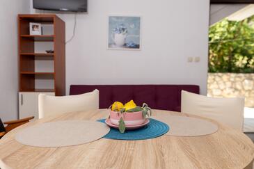 Ferienwohnung bietet Platz für 5 Gäste. Die Betten sind in Schlafzimmern, die es 2 gibt, und in Esszimmer, innerhalb einer Gesamtfläche von 43m2, angeordnet. Die Gäste haben eine eigene Terrasse zur Verfügung, auf der sie in warmen Sommernächten genießen können. Das Apartment bietet Meerblick. Für vollen Genuss und Entspannung gibt es einen privaten Grill für Gäste dieser Unterkunft.