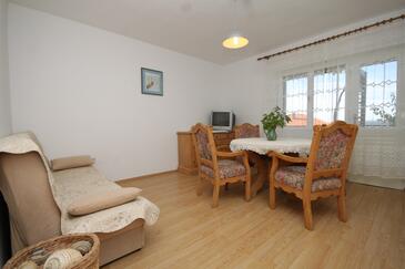 Ferienwohnung bietet Platz für 5 Gäste. Die Betten sind in Schlafzimmern, die es 2 gibt, und in Wohnzimmer, innerhalb einer Gesamtfläche von 56m2, angeordnet. Die Gäste haben eine eigene Terrasse zur Verfügung, auf der sie in warmen Sommernächten genießen können. Das Apartment bietet Meerblick. Es ist erlaubt, Speisen auf dem Gemeinschafts-Grill vorzubereiten. In der Unterkunftseinheit besteht die Möglichkeit des Mitbringens von Haustieren gegen Aufpreis.
