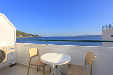 Ferienwohnung bietet Platz für 9 Gäste. Die Betten sind in Schlafzimmern, die es 3 gibt, innerhalb einer Gesamtfläche von 77m2, angeordnet. Die Gäste haben einen eigenen Balkon zur Verfügung, auf der sie in warmen Sommernächten genießen können. Das Apartment bietet Meerblick. Es ist erlaubt, Speisen auf dem Gemeinschafts-Grill vorzubereiten.