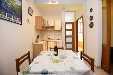 Ferienwohnung bietet Platz für 4 Gäste. Die Betten sind in Schlafzimmern, die es 2 gibt, innerhalb einer Gesamtfläche von 60m2, angeordnet. Die Gäste haben eine eigene Terrasse zur Verfügung, auf der sie in warmen Sommernächten genießen können. Das Apartment bietet Meerblick. Für vollen Genuss und Entspannung gibt es einen privaten Grill für Gäste dieser Unterkunft.