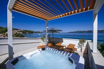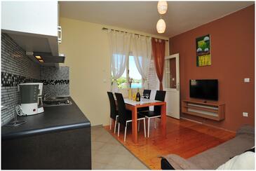 Ferienwohnung bietet Platz für 6 Gäste. Die Betten sind in Schlafzimmern, die es 2 gibt, innerhalb einer Gesamtfläche von 97m2, angeordnet. Die Gäste haben eine eigene Terrasse zur Verfügung, auf der sie in warmen Sommernächten genießen können. Das Apartment bietet Meerblick. Für vollen Genuss und Entspannung gibt es einen privaten Grill für Gäste dieser Unterkunft.