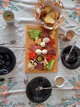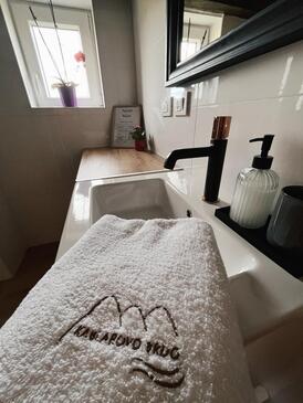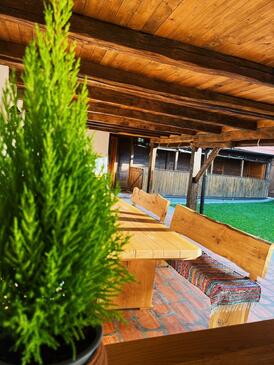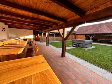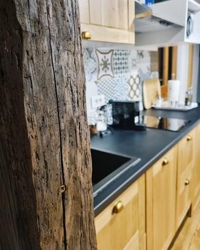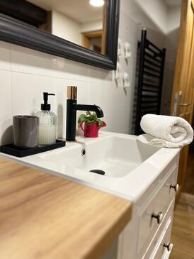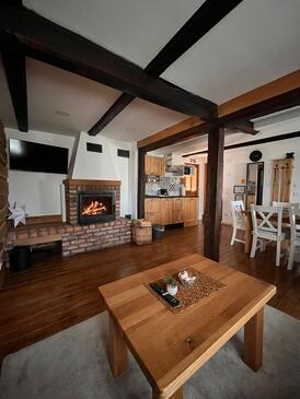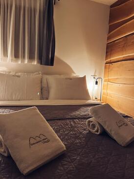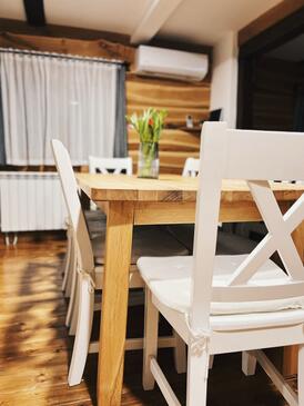 Haus bietet Platz für 6 Gäste. Die Betten sind in Schlafzimmern, die es 3 gibt, innerhalb einer Gesamtfläche von 71m2, angeordnet. Die Gäste haben eine eigene Terrasse zur Verfügung, auf der sie in warmen Sommernächten genießen können. Es ist erlaubt, Speisen auf dem Gemeinschafts-Grill vorzubereiten.