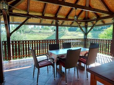 Haus bietet Platz für 5 Gäste. Die Betten sind in Schlafzimmern, die es 2 gibt, innerhalb einer Gesamtfläche von 85m2, angeordnet. Die Gäste haben eine eigene Terrasse zur Verfügung, auf der sie in warmen Sommernächten genießen können. Für vollen Genuss und Entspannung gibt es einen privaten Grill für Gäste dieser Unterkunft.