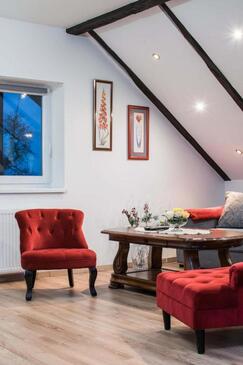 Ferienwohnung bietet Platz für 6 Gäste. Die Betten sind in Schlafzimmern, die es 2 gibt, und in Wohnzimmer, innerhalb einer Gesamtfläche von 90m2, angeordnet. Für vollen Genuss und Entspannung gibt es einen privaten Grill für Gäste dieser Unterkunft. In der Unterkunftseinheit besteht die Möglichkeit des Mitbringens von Haustieren gegen Aufpreis. Die reservierte Unterkunftseinheit hat keinen Balkon und keine Terrasse.