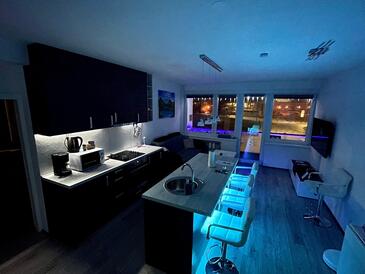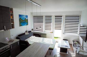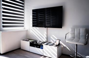Ferienwohnung bietet Platz für 4 Gäste. Die Betten sind in Schlafzimmern, die es 1 gibt, und in Wohnzimmer, innerhalb einer Gesamtfläche von 42m2, angeordnet. Die Gäste haben einen eigenen Balkon zur Verfügung, auf der sie in warmen Sommernächten genießen können. In der Unterkunftseinheit besteht die Möglichkeit des Mitbringens von Haustieren gegen Aufpreis.