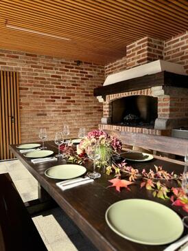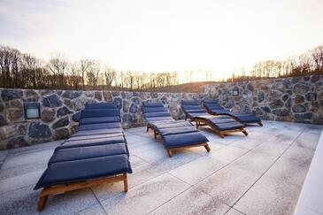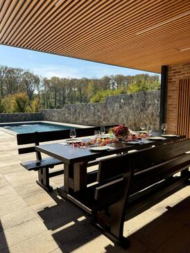 Haus bietet Platz für 8 Gäste. Die Betten sind in Schlafzimmern, die es 4 gibt, innerhalb einer Gesamtfläche von 137m2, angeordnet. Die Gäste haben einen eigenen Balkon zur Verfügung, auf der sie in warmen Sommernächten genießen können. Für vollen Genuss und Entspannung gibt es einen privaten Grill für Gäste dieser Unterkunft. Während ihres Aufenthalts können sich Gäste im privaten Schwimmbad entspannen.