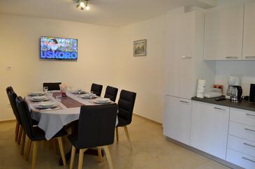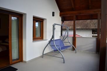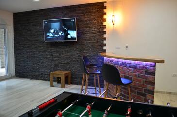 Haus bietet Platz für 6 Gäste. Die Betten sind in Schlafzimmern, die es 2 gibt, innerhalb einer Gesamtfläche von 100m2, angeordnet. Die Gäste haben eine eigene Terrasse zur Verfügung, auf der sie in warmen Sommernächten genießen können. Für vollen Genuss und Entspannung gibt es einen privaten Grill für Gäste dieser Unterkunft. In der Unterkunftseinheit besteht die Möglichkeit des Mitbringens von Haustieren, und die Dienstleistung ist im Preis der Unterkunft enthalten. Räume der gebuchten Unterkunftseinheit werden nicht in eine Ganze verbunden.