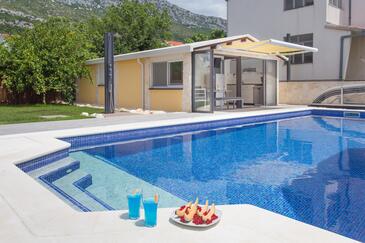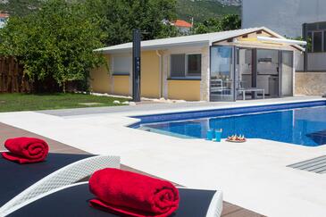 Haus bietet Platz für 15 Gäste. Die Betten sind in Schlafzimmern, die es 7 gibt, und in Wohnzimmer, innerhalb einer Gesamtfläche von 245m2, angeordnet. Die Gäste haben eine eigene Terrasse zur Verfügung, auf der sie in warmen Sommernächten genießen können. Das Haus bietet Meerblick. Für vollen Genuss und Entspannung gibt es einen privaten Grill für Gäste dieser Unterkunft. Während ihres Aufenthalts können sich Gäste im privaten Schwimmbad entspannen.