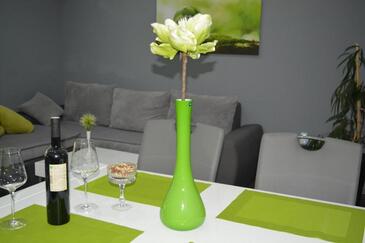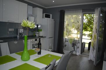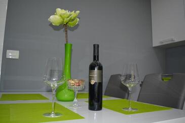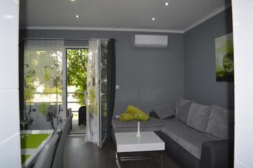 Ferienwohnung bietet Platz für 4 Gäste. Die Betten sind in Schlafzimmern, die es 1 gibt, und in Wohnzimmer, innerhalb einer Gesamtfläche von 47m2, angeordnet. Die Gäste haben eine eigene Terrasse zur Verfügung, auf der sie in warmen Sommernächten genießen können. Es ist erlaubt, Speisen auf dem Gemeinschafts-Grill vorzubereiten. In der Unterkunftseinheit besteht die Möglichkeit des Mitbringens von Haustieren, und die Dienstleistung ist im Preis der Unterkunft enthalten.