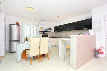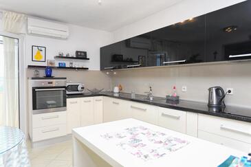 Ferienwohnung bietet Platz für 4 Gäste. Die Betten sind in Schlafzimmern, die es 2 gibt, innerhalb einer Gesamtfläche von 75m2, angeordnet. Die Gäste haben einen eigenen Balkon zur Verfügung, auf der sie in warmen Sommernächten genießen können. Das Apartment bietet Meerblick. Es ist erlaubt, Speisen auf dem Gemeinschafts-Grill vorzubereiten.