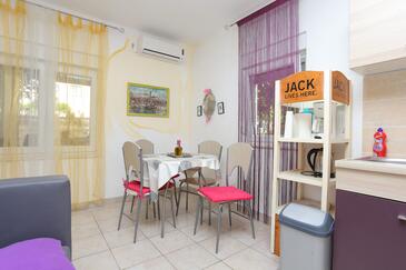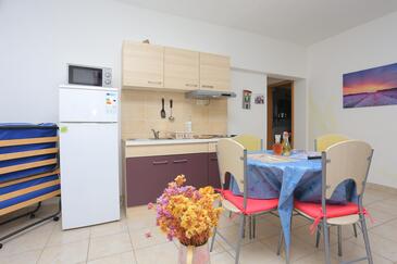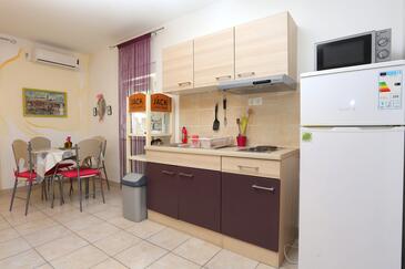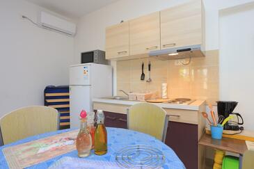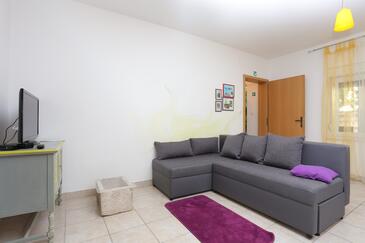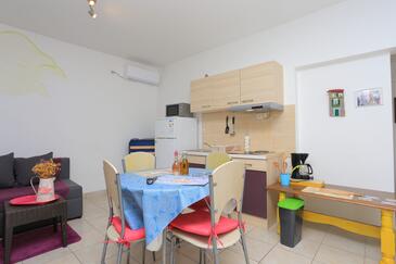 Ferienwohnung bietet Platz für 4 Gäste. Die Betten sind in Schlafzimmern, die es 1 gibt, und in Wohnzimmer, innerhalb einer Gesamtfläche von 33m2, angeordnet. Die Gäste haben eine eigene Terrasse zur Verfügung, auf der sie in warmen Sommernächten genießen können. Das Apartment bietet Meerblick. Es ist erlaubt, Speisen auf dem Gemeinschafts-Grill vorzubereiten.