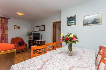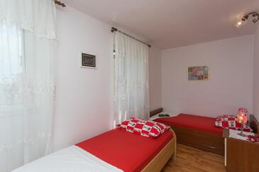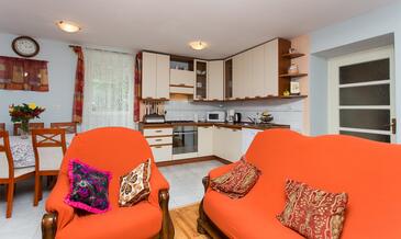 Ferienwohnung bietet Platz für 4 Gäste. Die Betten sind in Schlafzimmern, die es 3 gibt, innerhalb einer Gesamtfläche von 70m2, angeordnet. In der Unterkunftseinheit besteht die Möglichkeit des Mitbringens von Haustieren gegen Aufpreis. Die reservierte Unterkunftseinheit hat keinen Balkon und keine Terrasse.