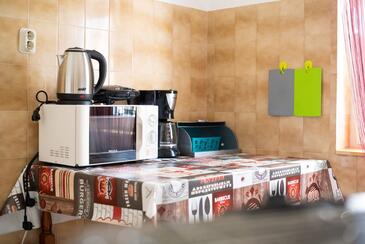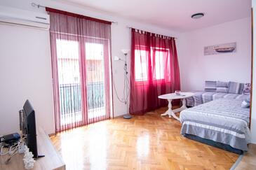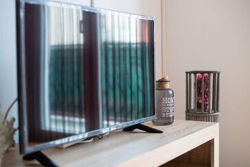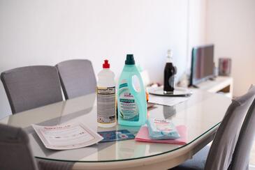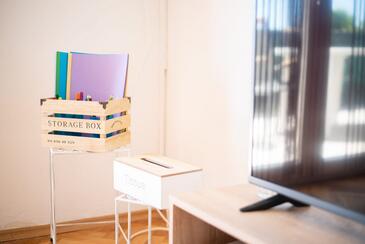 Ferienwohnung bietet Platz für 6 Gäste. Die Betten sind in Schlafzimmern, die es 2 gibt, und in Wohnzimmer, innerhalb einer Gesamtfläche von 60m2, angeordnet. Die Gäste haben einen eigenen Balkon zur Verfügung, auf der sie in warmen Sommernächten genießen können. Es ist erlaubt, Speisen auf dem Gemeinschafts-Grill vorzubereiten.