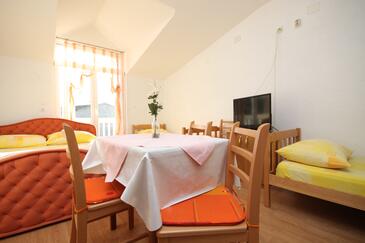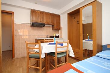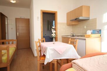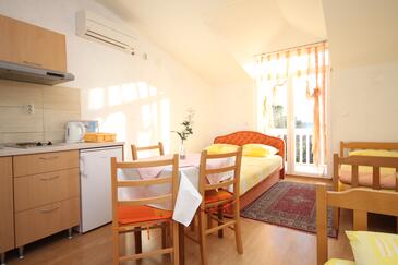 Studio bietet Platz für 2 Gäste. Die Betten sind in Schlafzimmern, die es 1 gibt, innerhalb einer Gesamtfläche von 16m2, angeordnet. Die Gäste haben eine eigene Terrasse zur Verfügung, auf der sie in warmen Sommernächten genießen können. Es ist erlaubt, Speisen auf dem Gemeinschafts-Grill vorzubereiten.