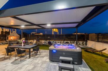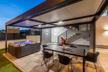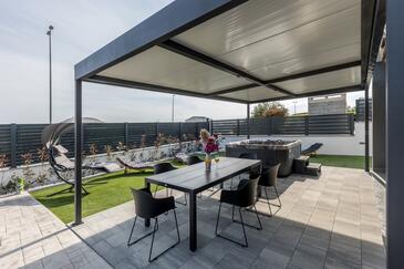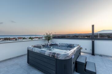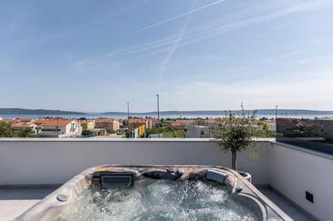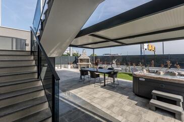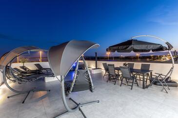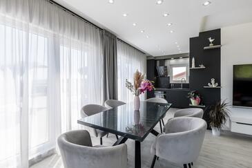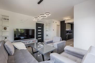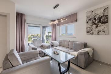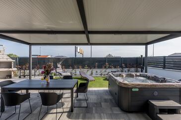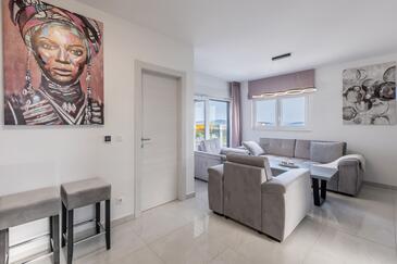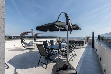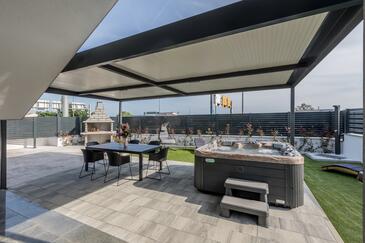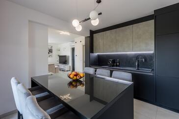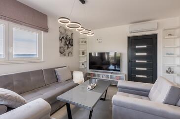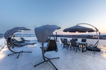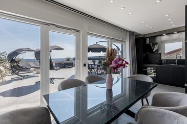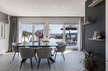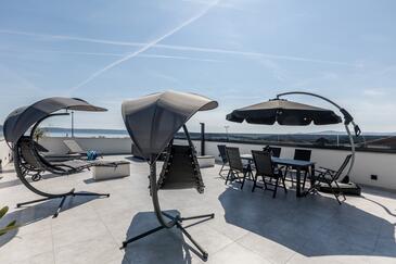 Ferienwohnung bietet Platz für 6 Gäste. Die Betten sind in Schlafzimmern, die es 3 gibt, innerhalb einer Gesamtfläche von 88m2, angeordnet. Die Gäste haben eine eigene Terrasse zur Verfügung, auf der sie in warmen Sommernächten genießen können. Das Apartment bietet Meerblick. Für vollen Genuss und Entspannung gibt es einen privaten Grill für Gäste dieser Unterkunft.