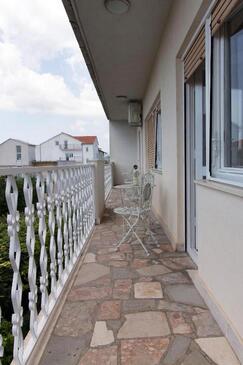 Ferienwohnung bietet Platz für 8 Gäste. Die Betten sind in Schlafzimmern, die es 3 gibt, und in Wohnzimmer, innerhalb einer Gesamtfläche von 112m2, angeordnet. Die Gäste haben eine eigene Terrasse zur Verfügung, auf der sie in warmen Sommernächten genießen können. Es ist erlaubt, Speisen auf dem Gemeinschafts-Grill vorzubereiten.