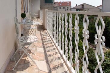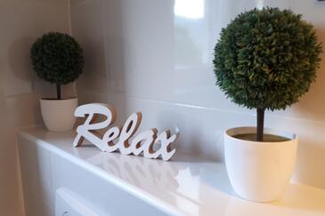 Ferienwohnung bietet Platz für 8 Gäste. Die Betten sind in Schlafzimmern, die es 3 gibt, und in Wohnzimmer, innerhalb einer Gesamtfläche von 112m2, angeordnet. Die Gäste haben eine eigene Terrasse zur Verfügung, auf der sie in warmen Sommernächten genießen können. Es ist erlaubt, Speisen auf dem Gemeinschafts-Grill vorzubereiten.