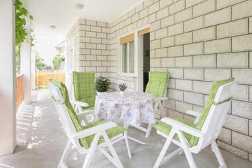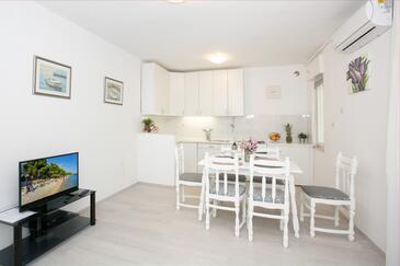 Ferienwohnung bietet Platz für 6 Gäste. Die Betten sind in Schlafzimmern, die es 2 gibt, und in Wohnzimmer, innerhalb einer Gesamtfläche von 58m2, angeordnet. Die Gäste haben eine eigene Terrasse zur Verfügung, auf der sie in warmen Sommernächten genießen können. Es ist erlaubt, Speisen auf dem Gemeinschafts-Grill vorzubereiten.