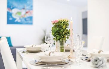 Haus bietet Platz für 12 Gäste. Die Betten sind in Schlafzimmern, die es 6 gibt, innerhalb einer Gesamtfläche von 193m2, angeordnet. Die Gäste haben eine eigene Terrasse zur Verfügung, auf der sie in warmen Sommernächten genießen können. Das Haus bietet Meerblick. Für vollen Genuss und Entspannung gibt es einen privaten Grill für Gäste dieser Unterkunft. Während ihres Aufenthalts können sich Gäste im privaten Schwimmbad entspannen. In der gebuchten Unterkunftseinheit zahlt man am Ort ein Depositum ( der Preis ist an der Internetseite angeführt ).