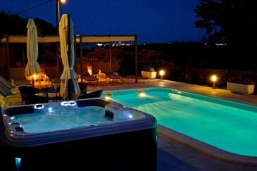 Haus bietet Platz für 12 Gäste. Die Betten sind in Schlafzimmern, die es 6 gibt, innerhalb einer Gesamtfläche von 193m2, angeordnet. Die Gäste haben eine eigene Terrasse zur Verfügung, auf der sie in warmen Sommernächten genießen können. Das Haus bietet Meerblick. Für vollen Genuss und Entspannung gibt es einen privaten Grill für Gäste dieser Unterkunft. Während ihres Aufenthalts können sich Gäste im privaten Schwimmbad entspannen. In der gebuchten Unterkunftseinheit zahlt man am Ort ein Depositum ( der Preis ist an der Internetseite angeführt ).
