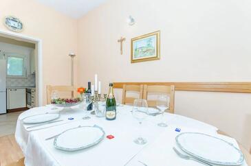 Ferienwohnung bietet Platz für 6 Gäste. Die Betten sind in Schlafzimmern, die es 2 gibt, und in Wohnzimmer, innerhalb einer Gesamtfläche von 56m2, angeordnet. Die Gäste haben eine eigene Terrasse zur Verfügung, auf der sie in warmen Sommernächten genießen können. Für vollen Genuss und Entspannung gibt es einen privaten Grill für Gäste dieser Unterkunft.
