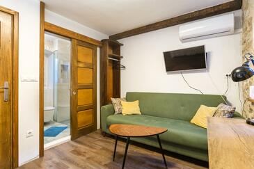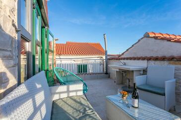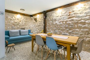 Haus bietet Platz für 6 Gäste. Die Betten sind in Schlafzimmern, die es 2 gibt, und in Esszimmer, innerhalb einer Gesamtfläche von 78m2, angeordnet. Die Gäste haben eine eigene Terrasse zur Verfügung, auf der sie in warmen Sommernächten genießen können. Räume der gebuchten Unterkunftseinheit werden nicht in eine Ganze verbunden. Unterkunftseinheit hat Räume, die von dem Rest der Einheit abgetrennt werden.