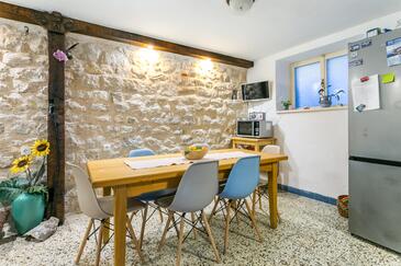 Haus bietet Platz für 6 Gäste. Die Betten sind in Schlafzimmern, die es 2 gibt, und in Esszimmer, innerhalb einer Gesamtfläche von 78m2, angeordnet. Die Gäste haben eine eigene Terrasse zur Verfügung, auf der sie in warmen Sommernächten genießen können. Räume der gebuchten Unterkunftseinheit werden nicht in eine Ganze verbunden. Unterkunftseinheit hat Räume, die von dem Rest der Einheit abgetrennt werden.