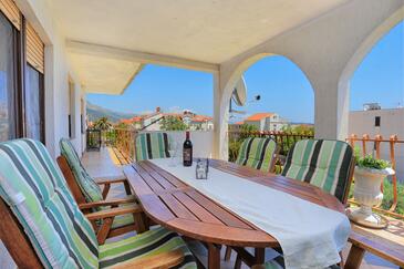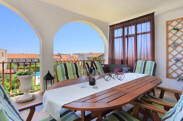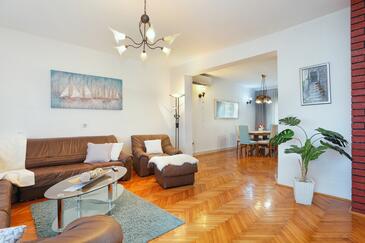 Ferienwohnung bietet Platz für 6 Gäste. Die Betten sind in Schlafzimmern, die es 3 gibt, innerhalb einer Gesamtfläche von 106m2, angeordnet. Die Gäste haben eine eigene Terrasse zur Verfügung, auf der sie in warmen Sommernächten genießen können. Für vollen Genuss und Entspannung gibt es einen privaten Grill für Gäste dieser Unterkunft.