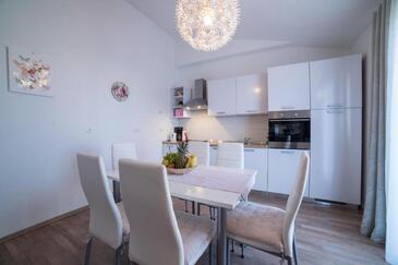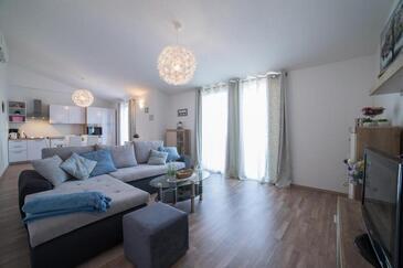 Ferienwohnung bietet Platz für 6 Gäste. Die Betten sind in Schlafzimmern, die es 3 gibt, innerhalb einer Gesamtfläche von 92m2, angeordnet. Die Gäste haben einen eigenen Balkon zur Verfügung, auf der sie in warmen Sommernächten genießen können. Es ist erlaubt, Speisen auf dem Gemeinschafts-Grill vorzubereiten.