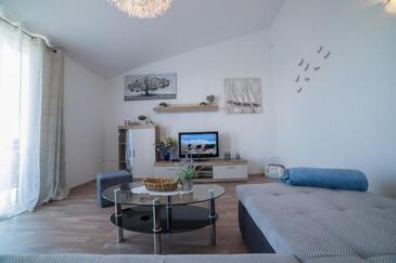 Ferienwohnung bietet Platz für 6 Gäste. Die Betten sind in Schlafzimmern, die es 3 gibt, innerhalb einer Gesamtfläche von 92m2, angeordnet. Die Gäste haben einen eigenen Balkon zur Verfügung, auf der sie in warmen Sommernächten genießen können. Es ist erlaubt, Speisen auf dem Gemeinschafts-Grill vorzubereiten.