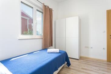 Ferienwohnung bietet Platz für 7 Gäste. Die Betten sind in Schlafzimmern, die es 3 gibt, und in Wohnzimmer, innerhalb einer Gesamtfläche von 86m2, angeordnet. Die Gäste haben eine eigene Terrasse zur Verfügung, auf der sie in warmen Sommernächten genießen können. Das Apartment bietet Meerblick. Es ist erlaubt, Speisen auf dem Gemeinschafts-Grill vorzubereiten.