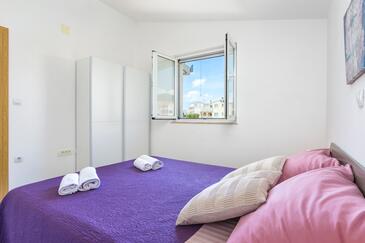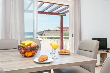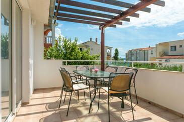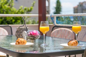 Ferienwohnung bietet Platz für 7 Gäste. Die Betten sind in Schlafzimmern, die es 3 gibt, und in Wohnzimmer, innerhalb einer Gesamtfläche von 86m2, angeordnet. Die Gäste haben eine eigene Terrasse zur Verfügung, auf der sie in warmen Sommernächten genießen können. Das Apartment bietet Meerblick. Es ist erlaubt, Speisen auf dem Gemeinschafts-Grill vorzubereiten.