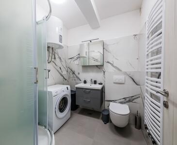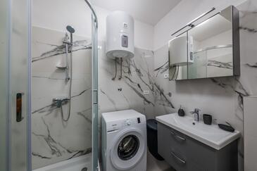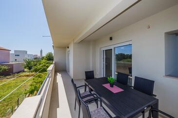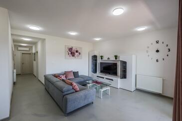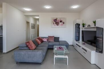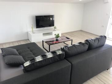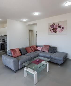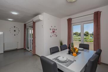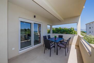 Ferienwohnung bietet Platz für 8 Gäste. Die Betten sind in Schlafzimmern, die es 3 gibt, und in Wohnzimmer, innerhalb einer Gesamtfläche von 83m2, angeordnet. Die Gäste haben eine eigene Terrasse zur Verfügung, auf der sie in warmen Sommernächten genießen können. Das Apartment bietet Meerblick. Es ist erlaubt, Speisen auf dem Gemeinschafts-Grill vorzubereiten.