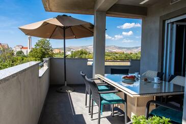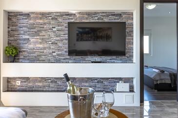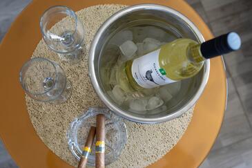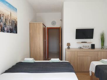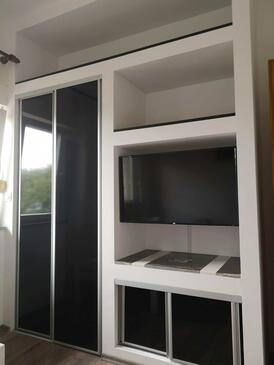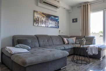 Ferienwohnung bietet Platz für 8 Gäste. Die Betten sind in Schlafzimmern, die es 3 gibt, und in Wohnzimmer, innerhalb einer Gesamtfläche von 100m2, angeordnet. Die Gäste haben eine eigene Terrasse zur Verfügung, auf der sie in warmen Sommernächten genießen können. Das Apartment bietet Meerblick. Es ist erlaubt, Speisen auf dem Gemeinschafts-Grill vorzubereiten.