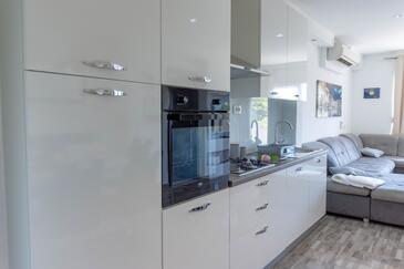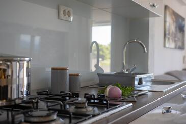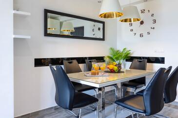 Ferienwohnung bietet Platz für 8 Gäste. Die Betten sind in Schlafzimmern, die es 3 gibt, und in Wohnzimmer, innerhalb einer Gesamtfläche von 100m2, angeordnet. Die Gäste haben eine eigene Terrasse zur Verfügung, auf der sie in warmen Sommernächten genießen können. Das Apartment bietet Meerblick. Es ist erlaubt, Speisen auf dem Gemeinschafts-Grill vorzubereiten.