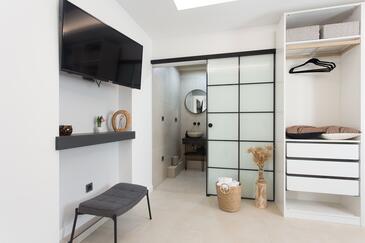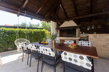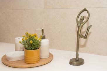 Ferienwohnung bietet Platz für 6 Gäste. Die Betten sind in Schlafzimmern, die es 3 gibt, innerhalb einer Gesamtfläche von 106m2, angeordnet. Die Gäste haben eine eigene Terrasse zur Verfügung, auf der sie in warmen Sommernächten genießen können. Für vollen Genuss und Entspannung gibt es einen privaten Grill für Gäste dieser Unterkunft. Während ihres Aufenthalts können sich Gäste im privaten Schwimmbad entspannen. In der gebuchten Unterkunftseinheit zahlt man am Ort ein Depositum ( der Preis ist an der Internetseite angeführt ).