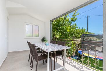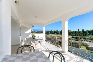 Ferienwohnung bietet Platz für 8 Gäste. Die Betten sind in Schlafzimmern, die es 4 gibt, innerhalb einer Gesamtfläche von 107m2, angeordnet. Die Gäste haben eine eigene Terrasse zur Verfügung, auf der sie in warmen Sommernächten genießen können. Das Apartment bietet Meerblick. Es ist erlaubt, Speisen auf dem Gemeinschafts-Grill vorzubereiten.